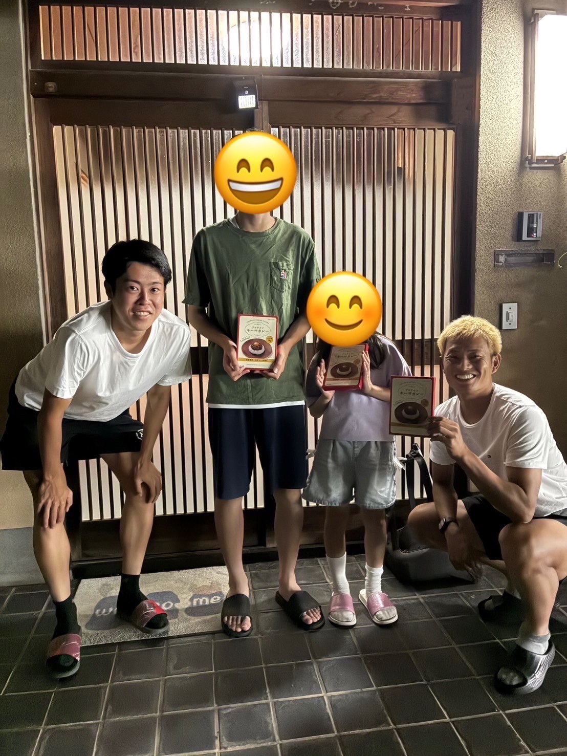また、NPO法人ツナグーのメンバーである現役プロサッカー選手の毛利 駿也選手(ツエーゲン金沢:背番号16・DF/写真 右側)と同じく現役プロサッカー選手の四宮 悠成選手(ツエーゲン金沢:背番号23・MF/写真 左側)が直接支援家庭へお届けに伺ってくださったとのことです。